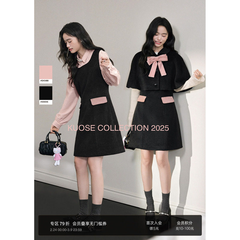 阔色披肩斗篷背心裙连衣裙两件套装25秋冬季女上衣短裙子呢子裙春