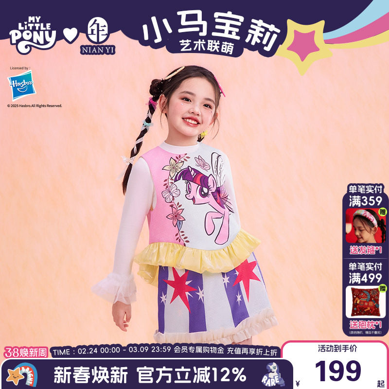 小马宝莉联名年衣童装套装春新款女童卡通背心上衣短裙半裙两件套