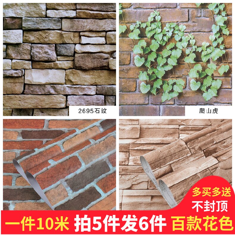 pvc自粘墙纸复古砖头纹带胶壁纸防水桌贴店铺幼儿园墙裙门面装修