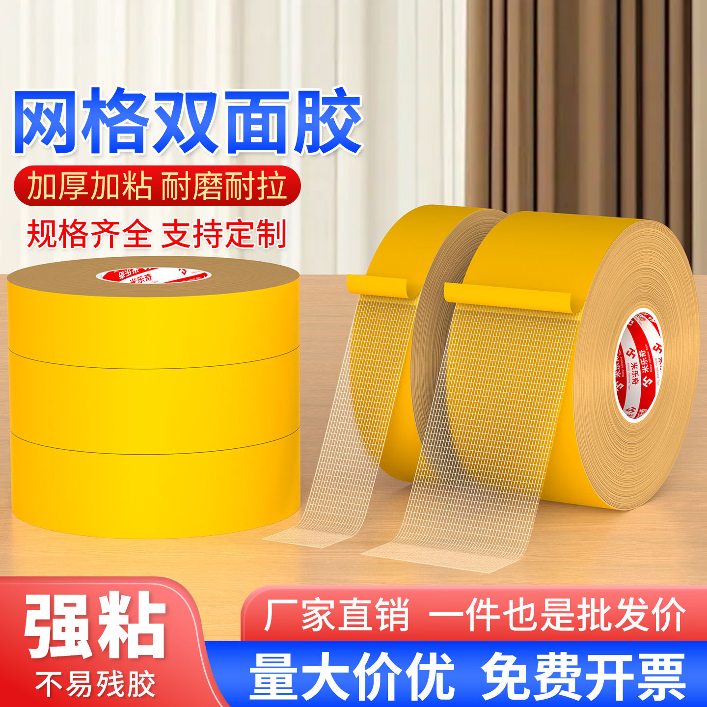 墙纸墙布专用超粘网格双面胶无痕不伤墙高粘度墙面挂画神器宿舍贴墙胶带海报壁纸固定可移胶布防水防潮不留胶
