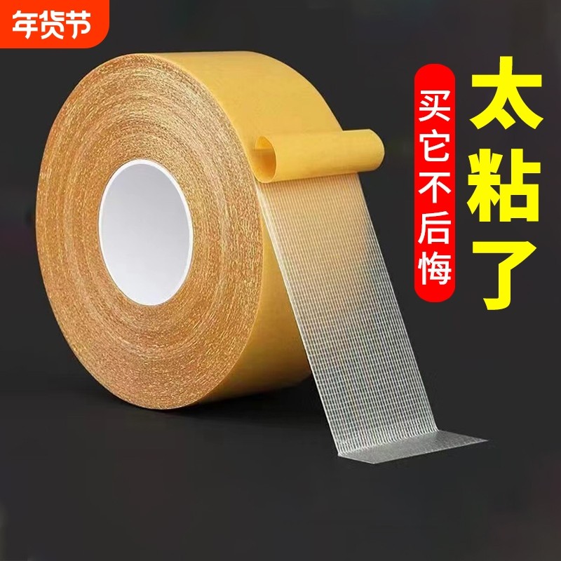 布基双面胶带高粘度地垫防滑垫地板革固定超粘胶布宽防水不留痕强力网格双面胶贴壁纸易撕粘贴免打孔地毯桌布