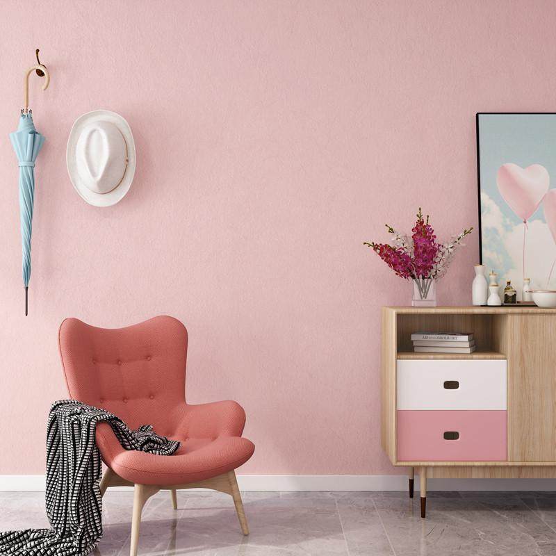 莫兰迪北欧风格色脏粉色墙纸卧室客厅现代简约纯色无纺布素色壁纸
