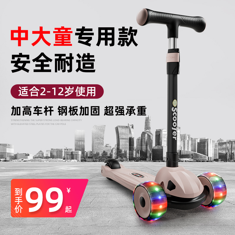 新款滑板车儿童滑滑车2-12岁男女宝宝户外玩具车三轮闪光踏板折叠