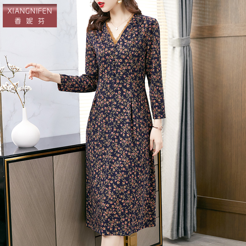 - 妈妈秋冬连衣裙中长款