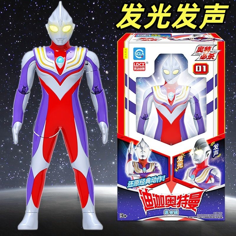 灵动创想正版迪迦奥特曼声光可动人偶玩具奥特必杀战士儿童小男孩