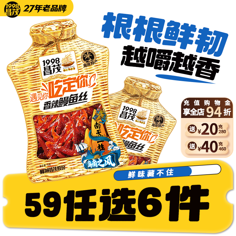 【59元任选6件】昌茂香辣鳗鱼丝75g海南特产海鲜味休闲小零食品