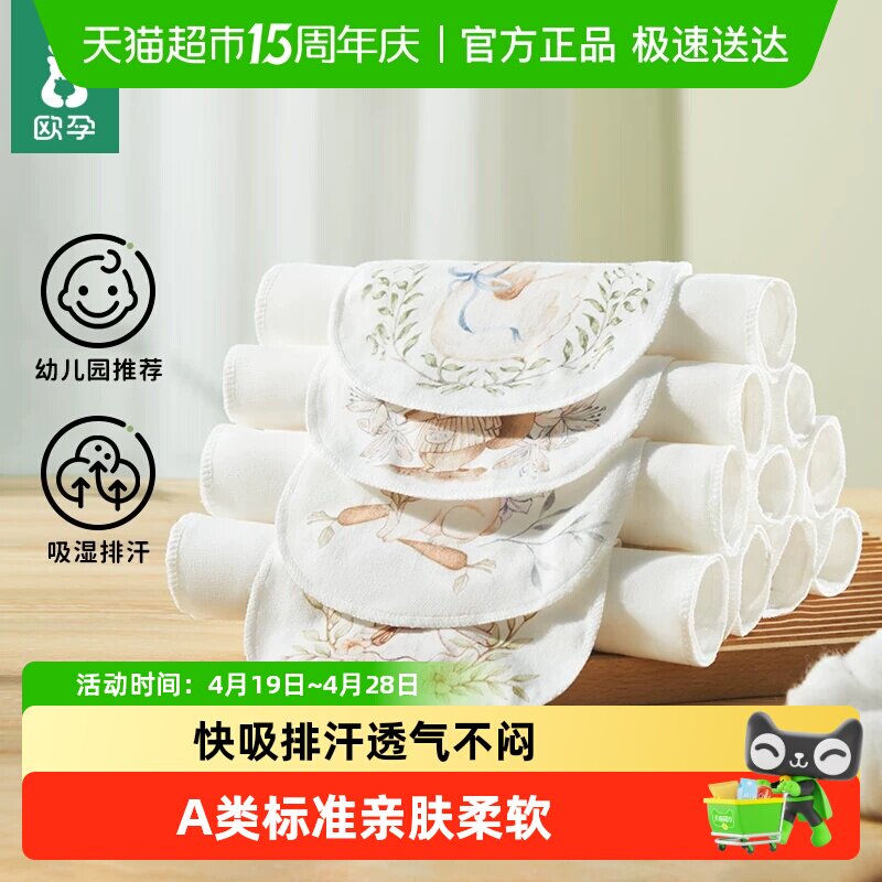 欧孕吸汗巾儿童纯棉a类幼儿园婴儿宝宝止汗巾大号全棉垫背隔汗巾