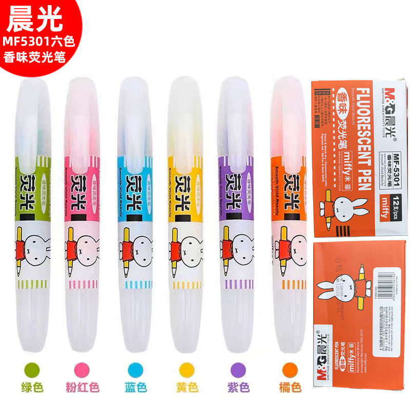 晨光荧光笔MF5301粗头米菲标记笔学生卡通记号笔单头彩色笔晨光
