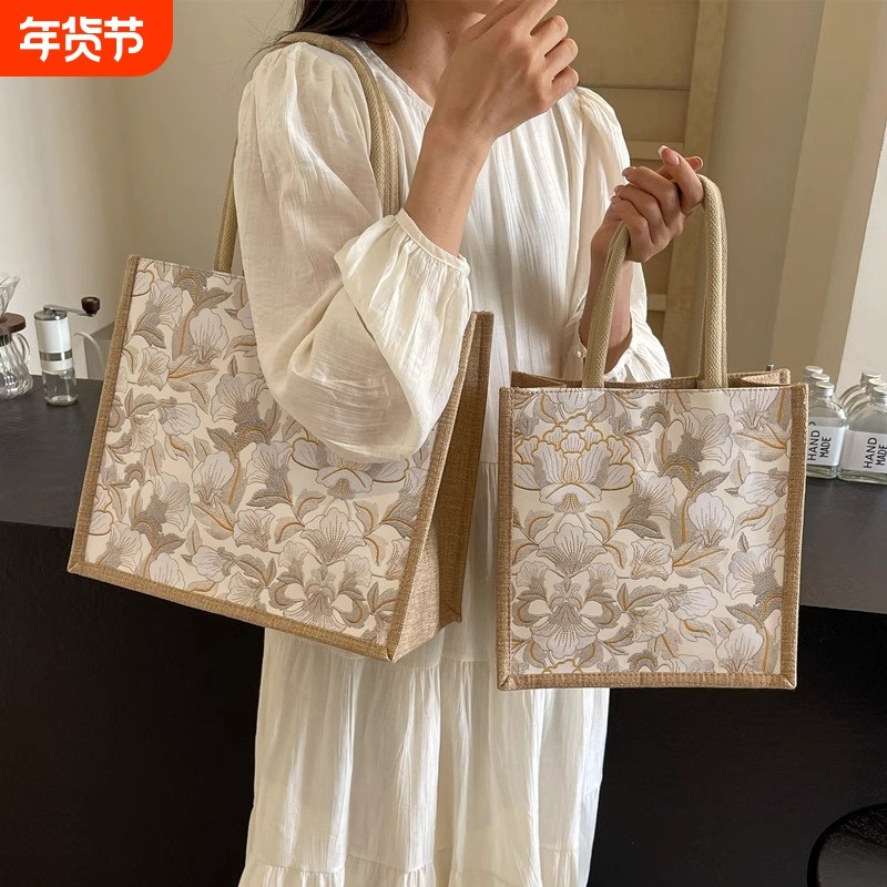 亚麻手提袋女时尚外出定制伴手礼礼品上班通勤饭盒麻布袋子帆布包