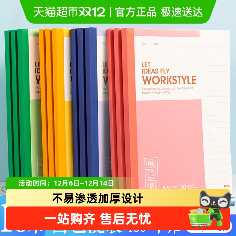 得力文具笔记本子大学生用简约创意A5/B5学生练习本四本装可爱记事本学生缝线本加厚车线本子ins风作业本