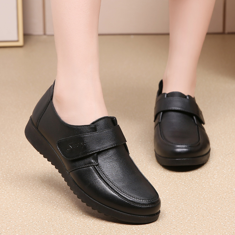 织丽老年鞋女妈妈皮鞋真皮软底单鞋老太太老人春秋女鞋奶奶中老年