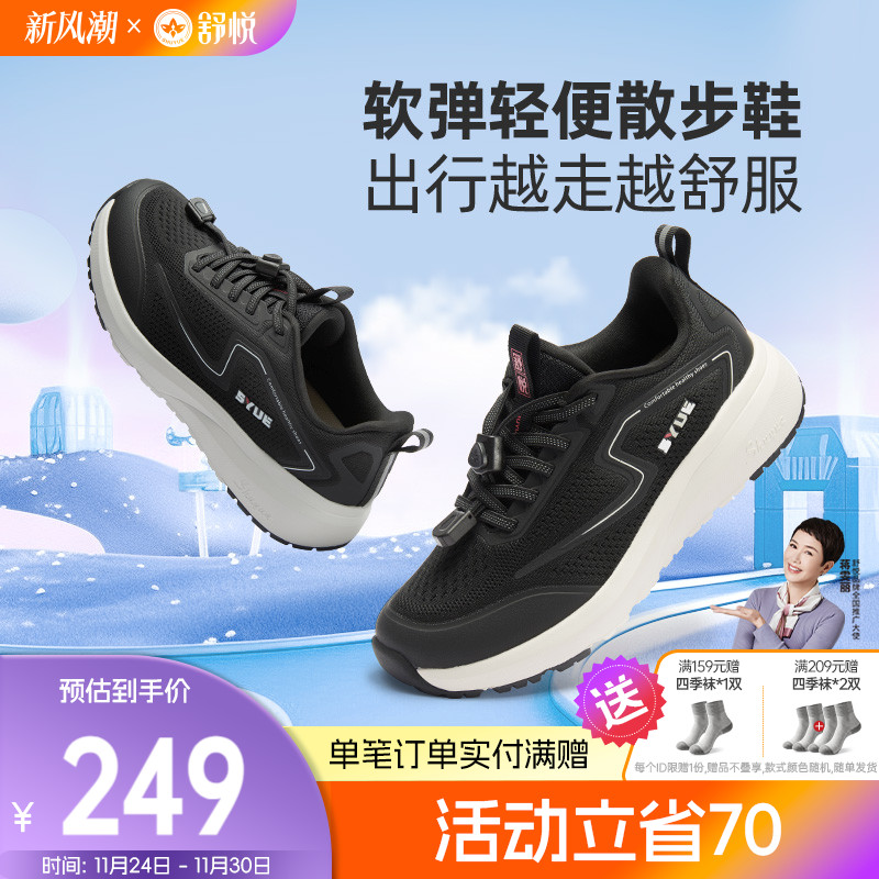 舒悦老人鞋旗舰店老年鞋女妈妈春秋款舒适防滑软底健步运动鞋爸爸