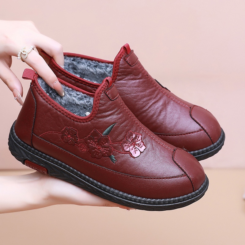 妈妈鞋棉鞋冬季软底舒适皮鞋女中老年保暖鞋防滑平底加绒老年鞋女