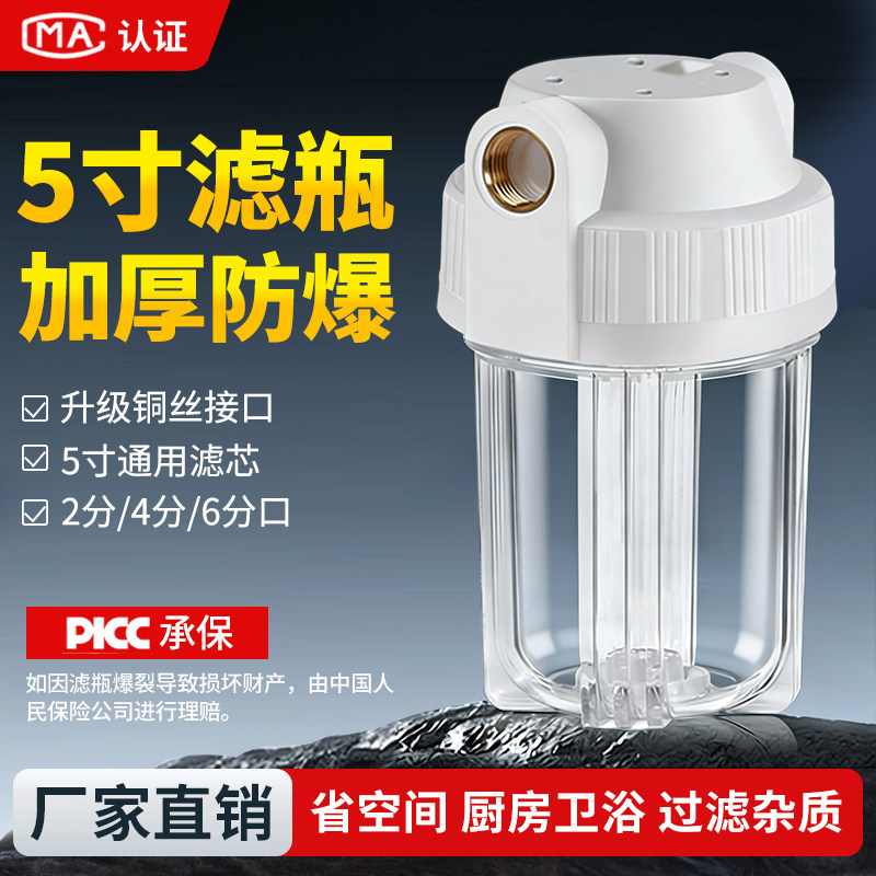 前置过滤器5寸透明滤瓶铜牙净水器饮水机初级滤桶4分净水机器配件