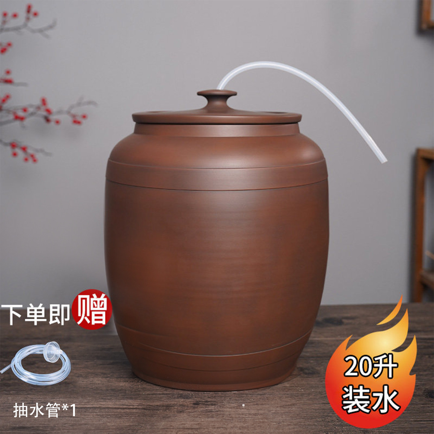 景德镇陶瓷水缸10斤15斤20斤家用纯净水水桶泡茶储水罐冷水壶带盖