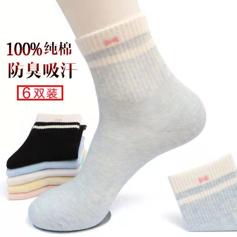 100%纯棉袜子女韩版中筒女士秋冬款棉袜全棉防臭女袜运动ins潮袜