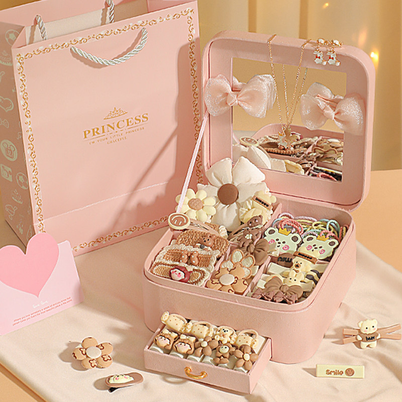 儿童发饰礼盒套装可爱小女孩生日礼物公主发夹头绳女童高端首饰盒