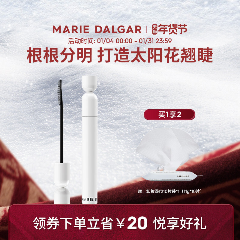 玛丽黛佳狼尾纤长睫毛膏浓密卷翘太阳花根根分明定型便携正品7g