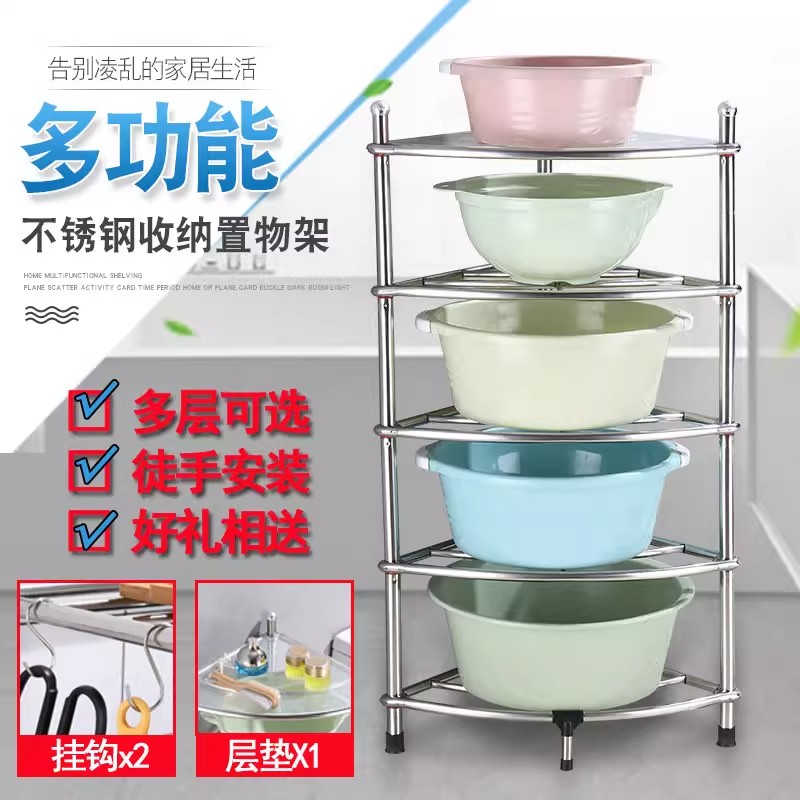 新款洗脸盆架子落地家用农村不锈钢置物架多功能简易多层卫生间架