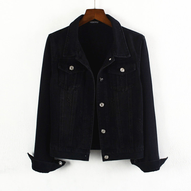 2025春秋季韩版宽松大码牛仔外套女百搭黑色牛仔衣夹克短外套上衣