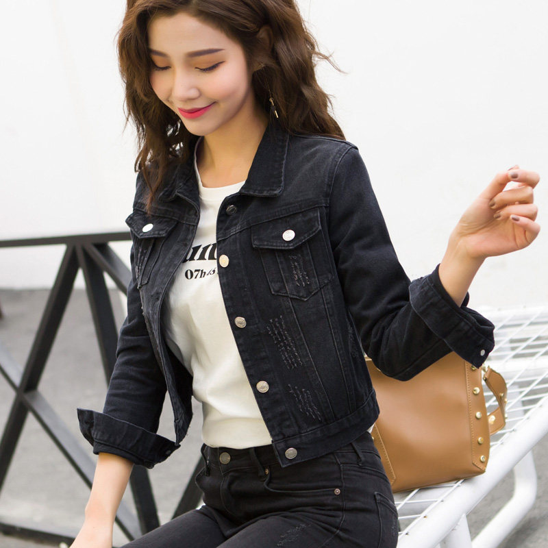 牛仔外套女春秋短款修身韩版新款显瘦学生长袖牛仔服上衣黑色高腰