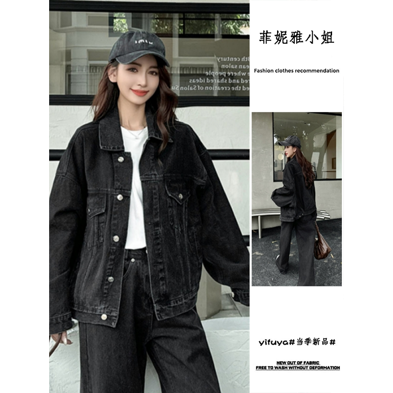 柔软oversize黑色初秋牛仔外套韩版宽松春装女款2025年新款中长款