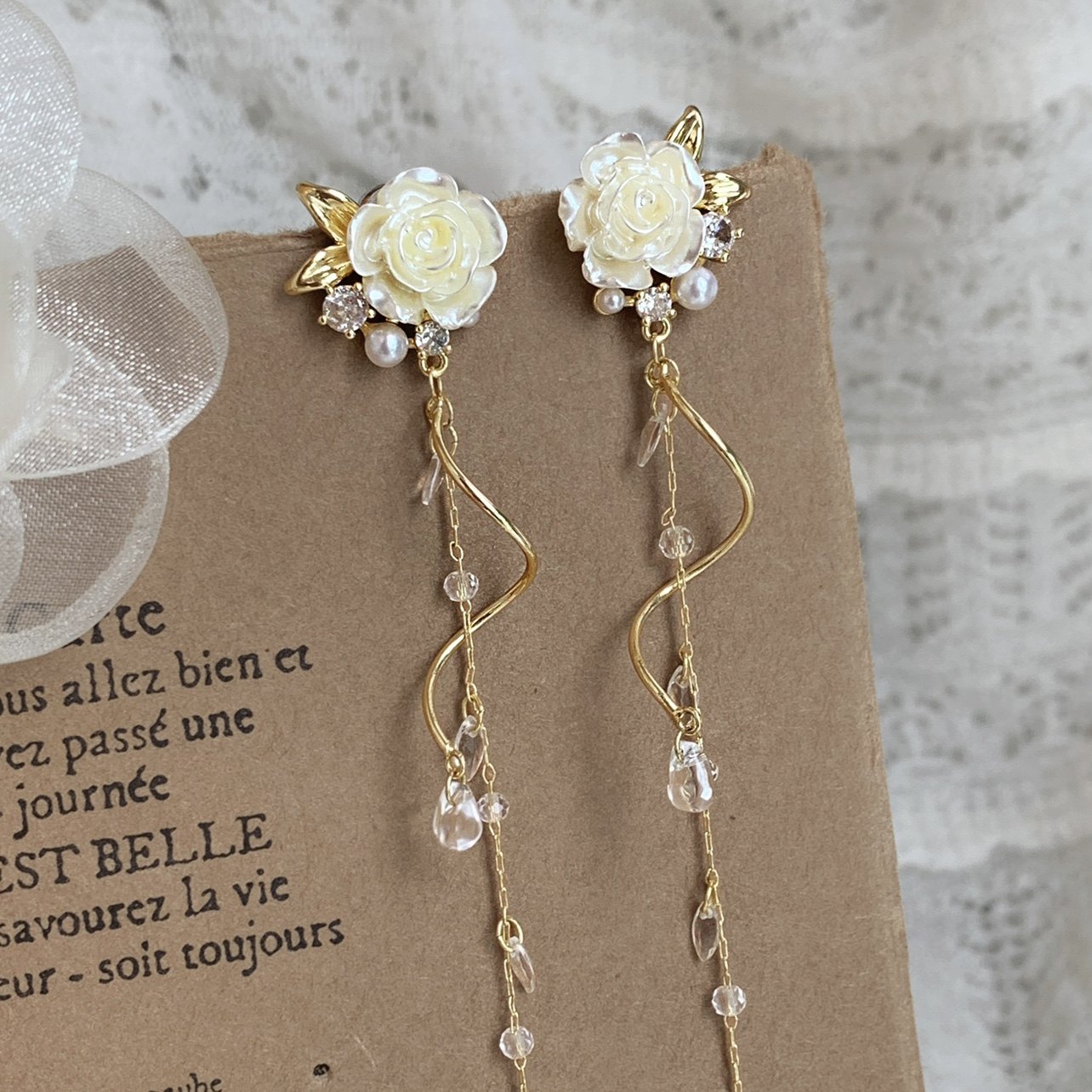 「清冷茉莉」原创长款山茶花流苏耳饰蚊香盘耳夹女无耳洞耳环耳钉