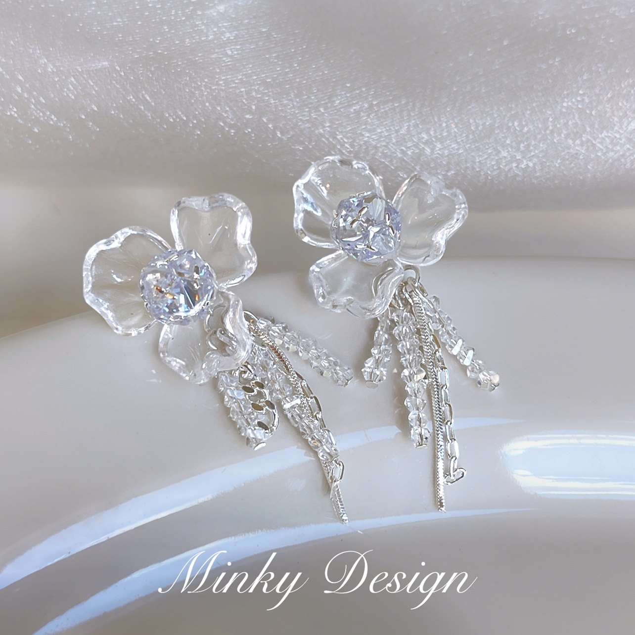 「四时花令」超仙透明花花耳环蚊香盘耳夹无耳洞清新流苏耳饰耳钉