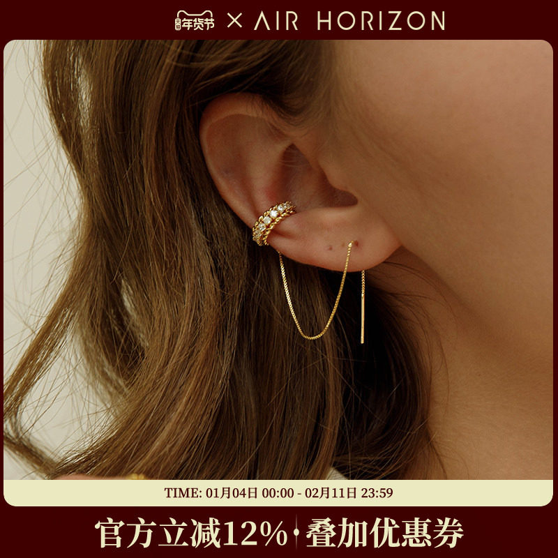 小众轻奢高级感耳环长款流苏耳夹锆石设计双流苏耳骨夹无耳洞耳饰