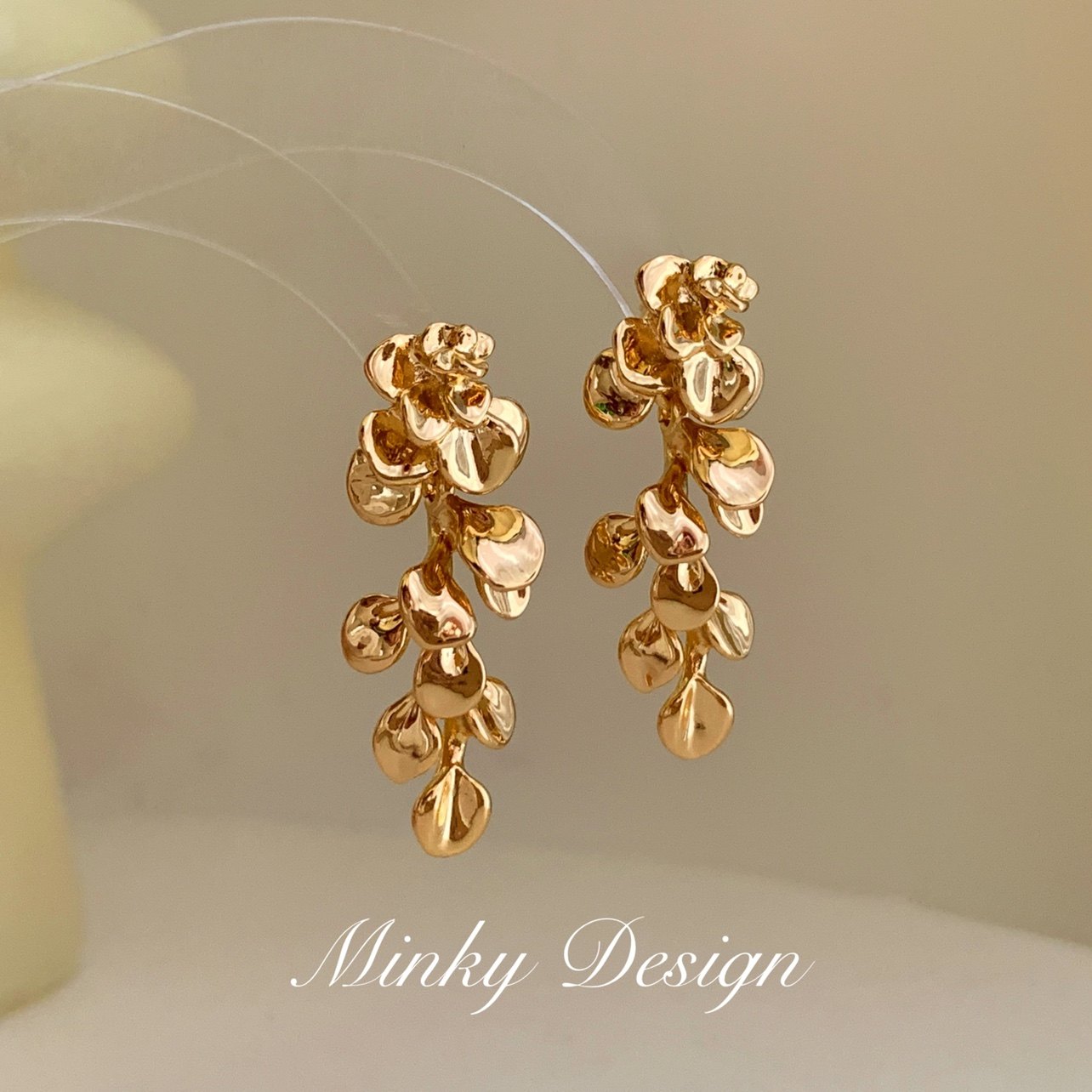 「日落拿铁」金色花朵流苏耳饰蚊香盘耳夹女无耳洞轻奢耳钉方圆脸