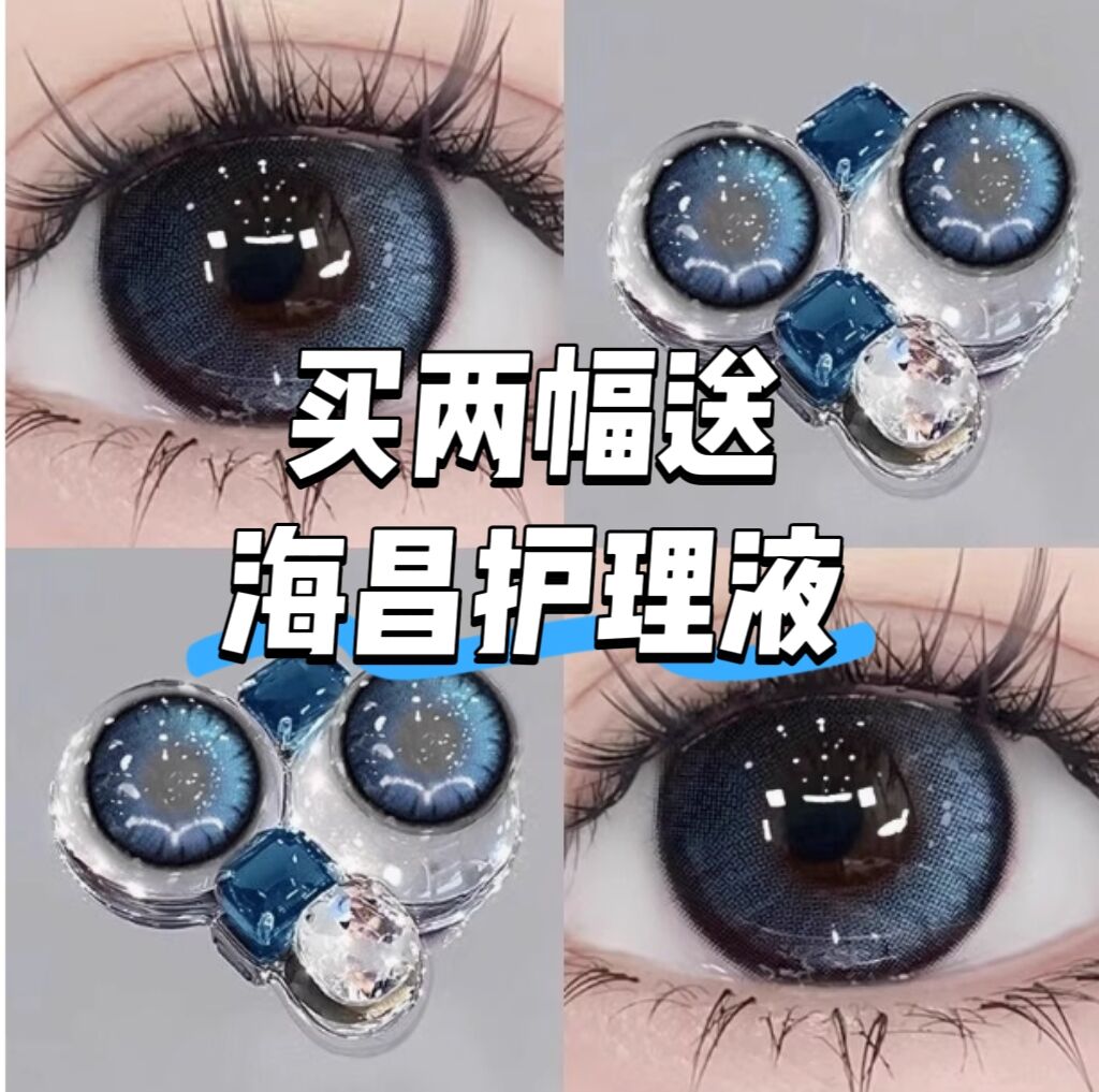 海昌护理液+蓝色混血三明治美瞳半年抛大直径网感隐形眼镜JNBL