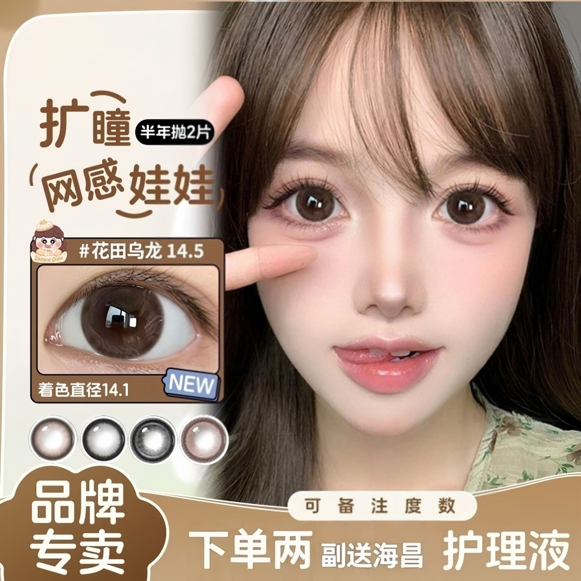 海昌护理液+棕色美瞳半年抛大直径扩眼网感大眼自然隐形眼镜JNBL