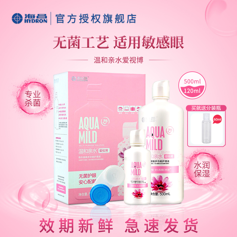 海昌护理液爱视博温和亲水500ml+120ml隐形眼镜美瞳杀菌药水正品