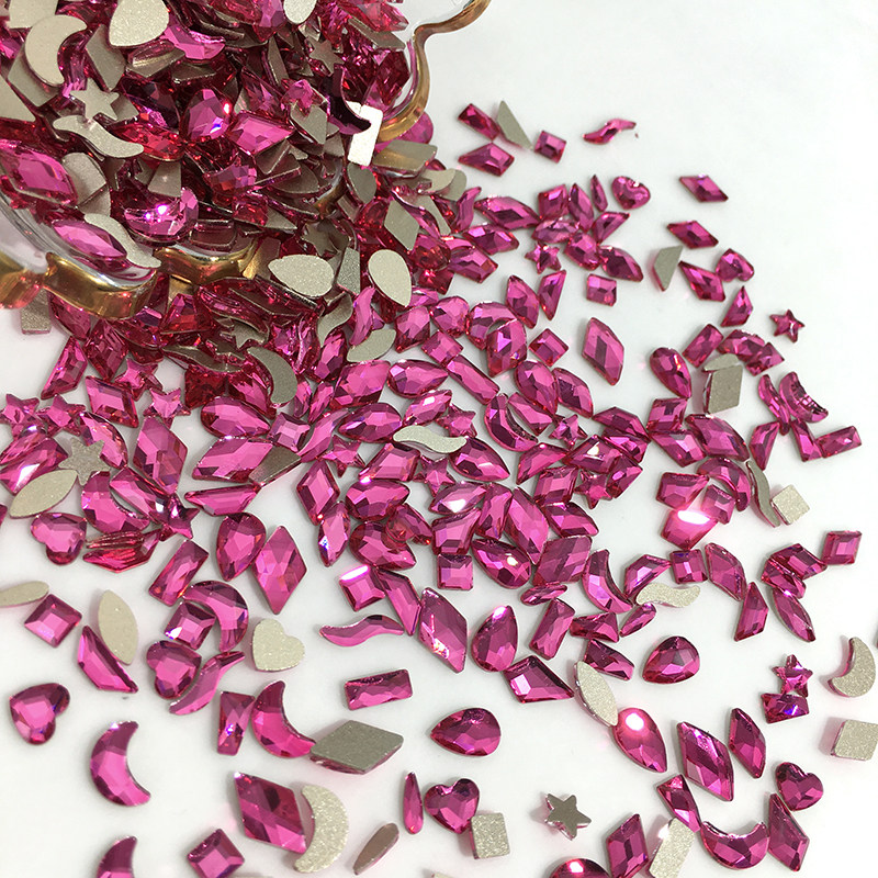 网红爆款2件包邮30颗平底异形美甲玫红色指尖钻饰品混装DIY钻