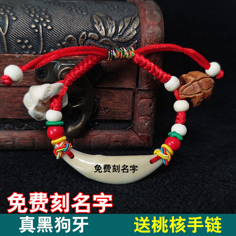 【免费刻名字】黑狗牙宝宝新生婴儿童成人孕妇护身符桃木红绳手链