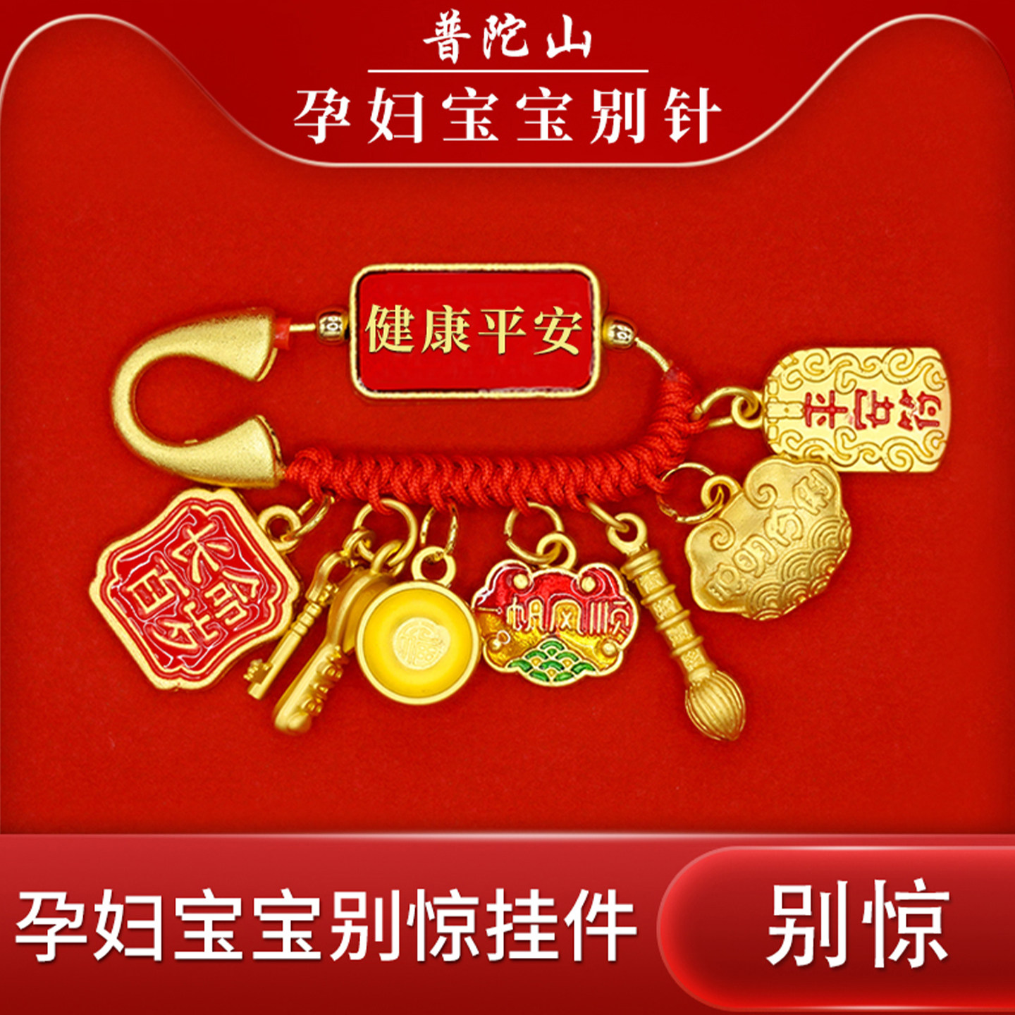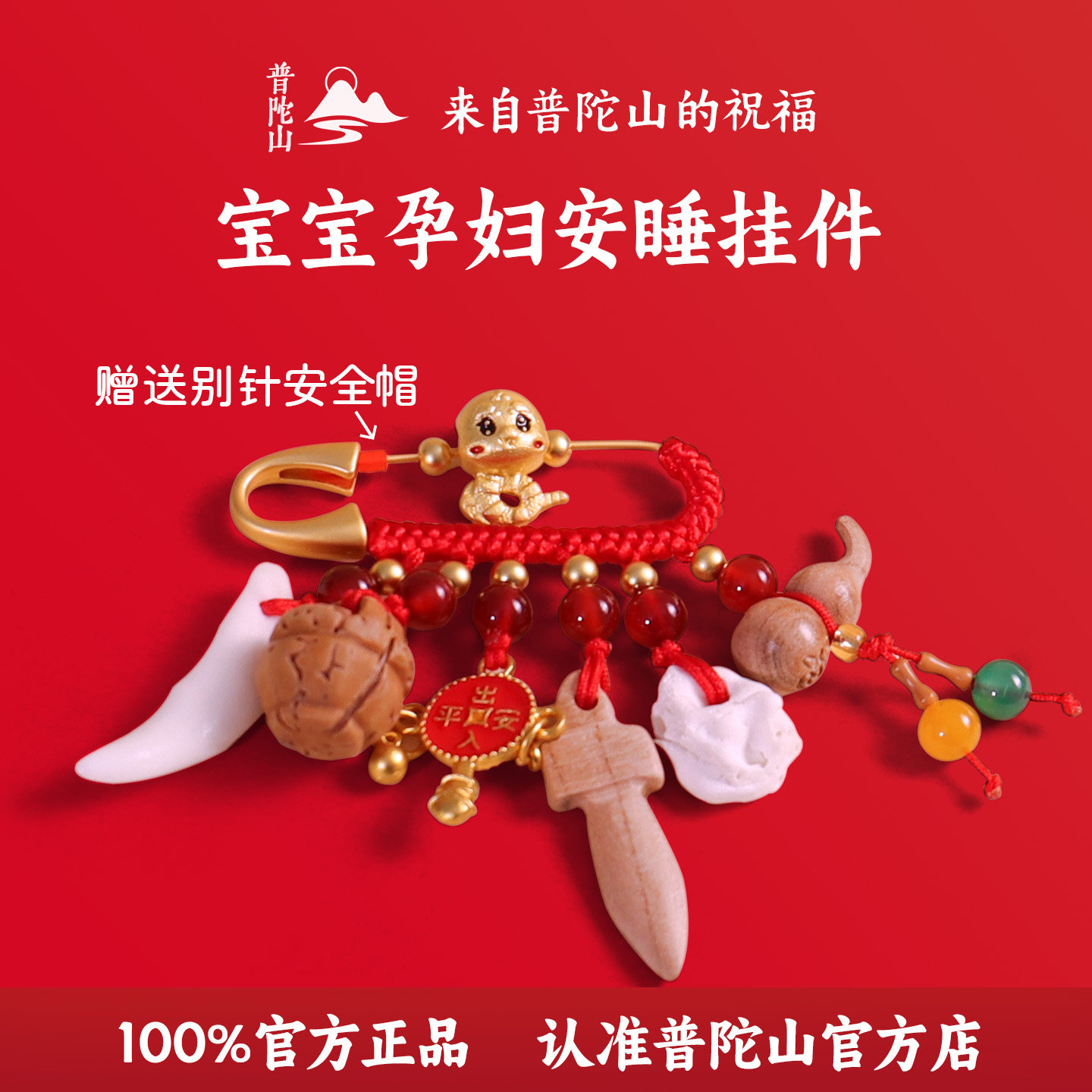 普陀山孕妇别针防宝宝婴儿出门惊吓挂件胸针桃木朱砂黑狗牙护身符