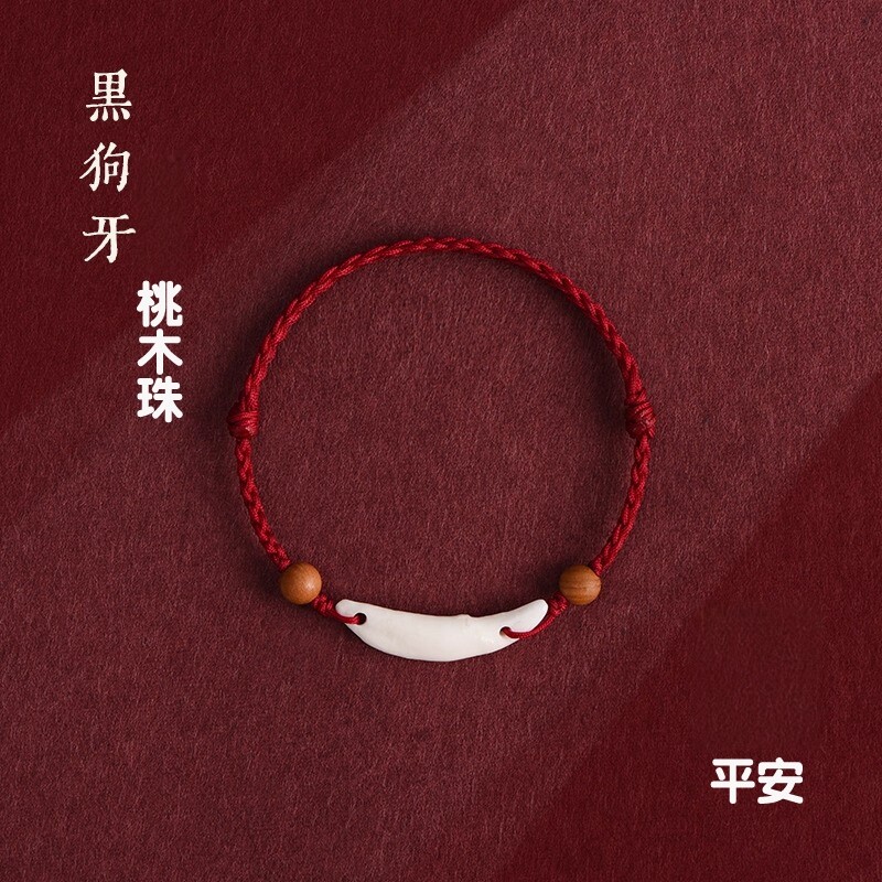 2026本命年红手绳黑狗牙宝宝惊防吓化岁太护身符桃木编织红绳手链