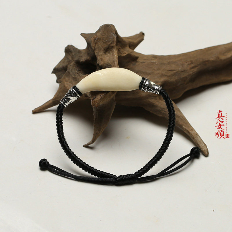 真安顺正宗黑狗牙手链黑色绳金刚结壮胆自信本命年属龙手链民族风