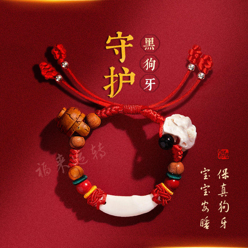 猪惊骨精骨婴儿儿童压惊红绳手链真黑狗牙桃木朱砂宝宝防惊吓手串
