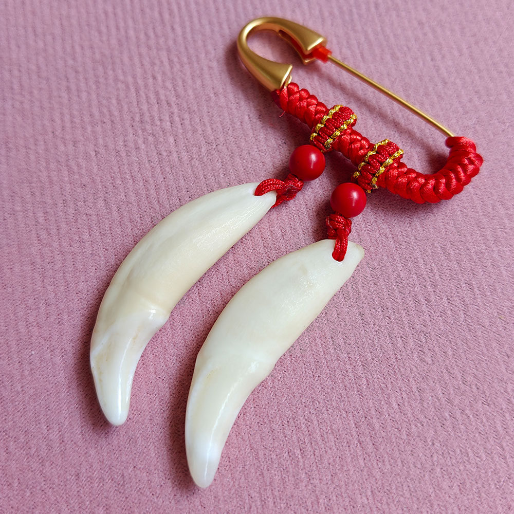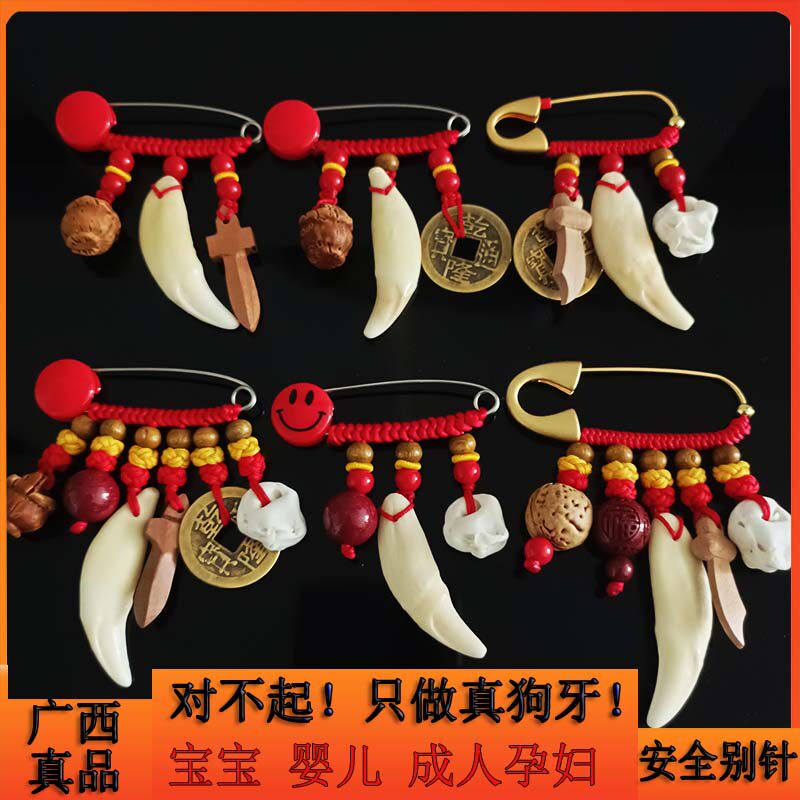 黑狗牙沙金别针婴儿宝宝孕妇出行猪惊骨桃木蓝真狗牙齿护胸针挂件