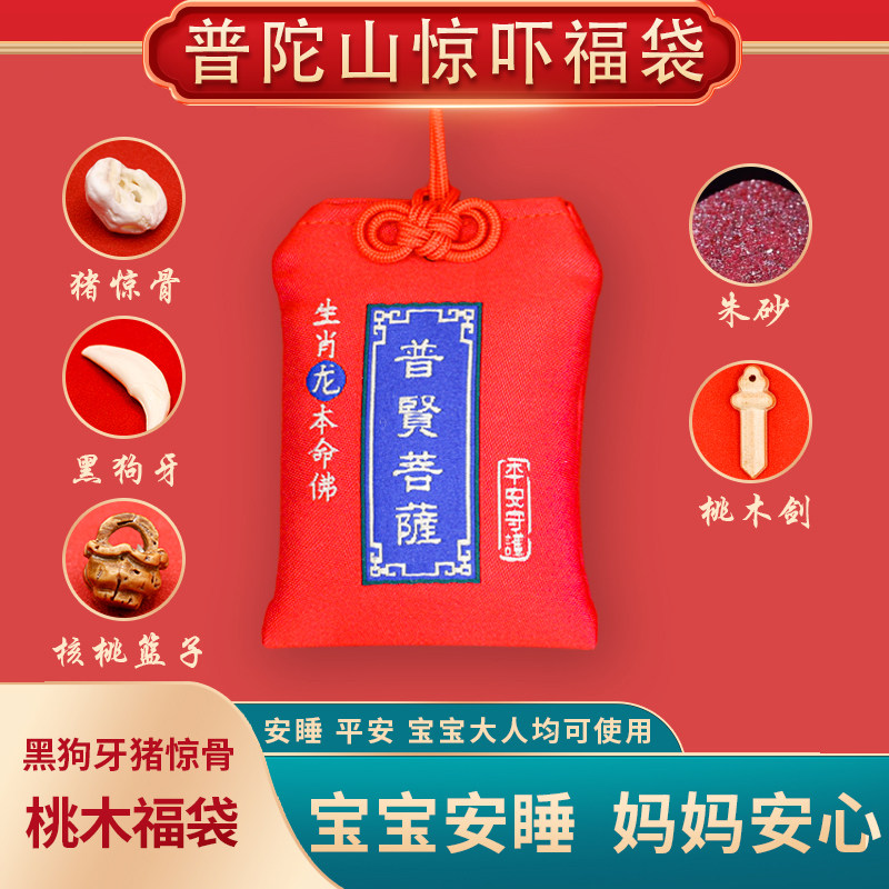 普陀山宝宝惊吓福袋婴儿黑狗牙朱砂护身符挂件桃木猪惊骨桃篮吊坠