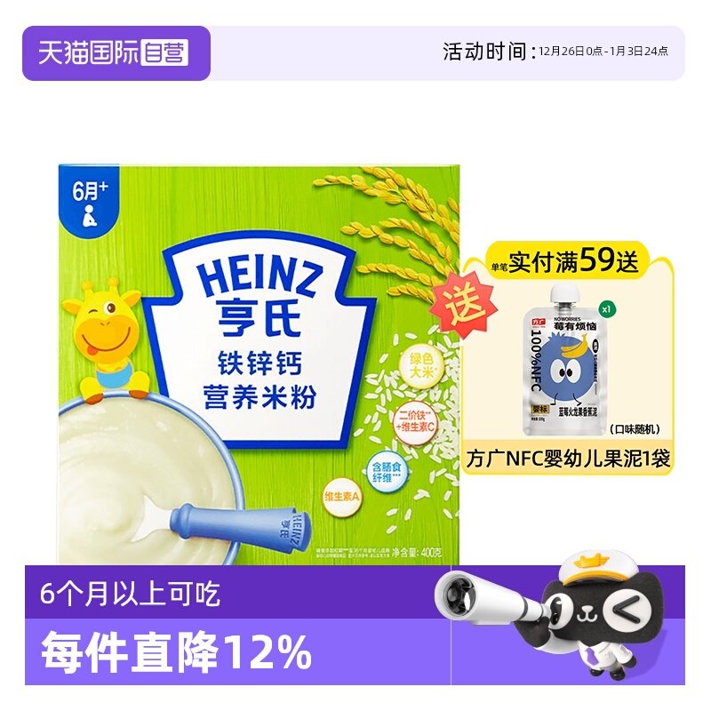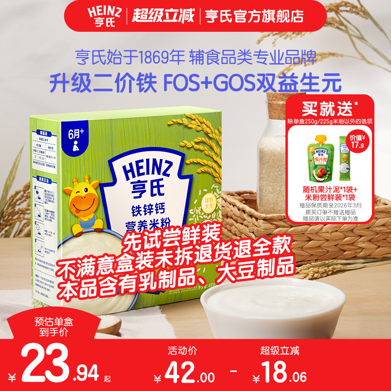 亨氏米粉婴儿高铁6个月营养锌钙米糊婴幼儿宝宝辅食官方旗舰店款