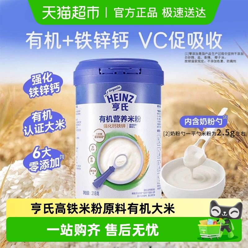 亨氏宝宝辅食强化钙铁锌婴幼儿高铁有机营养米粉米糊不添加糖和盐