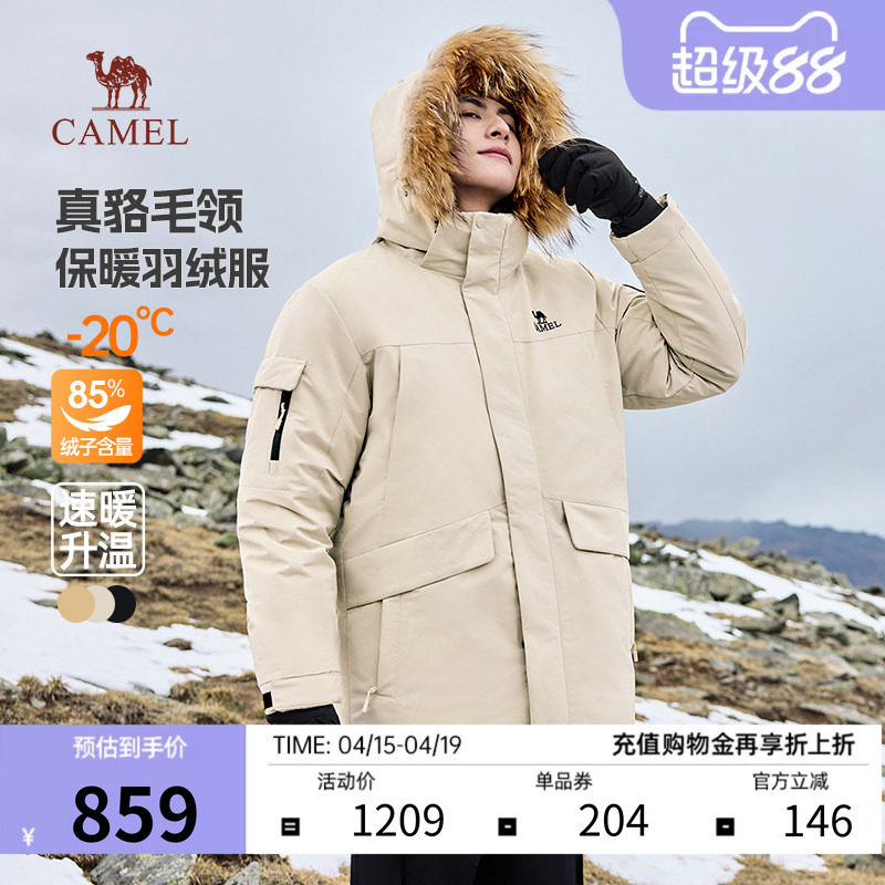 骆驼男装毛领羽绒服2025秋冬新款工装中长款加厚防泼水极寒外套女