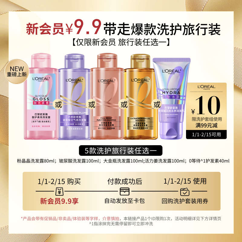 【新会员小美盒】欧莱雅控油蓬松尝鲜盒/单品旅行装五选一+回购券