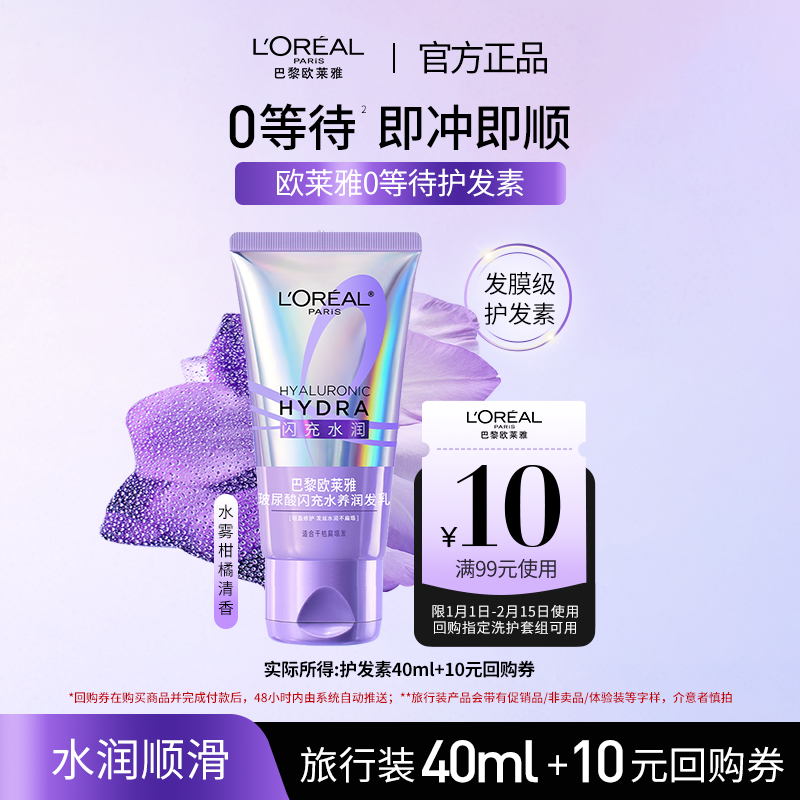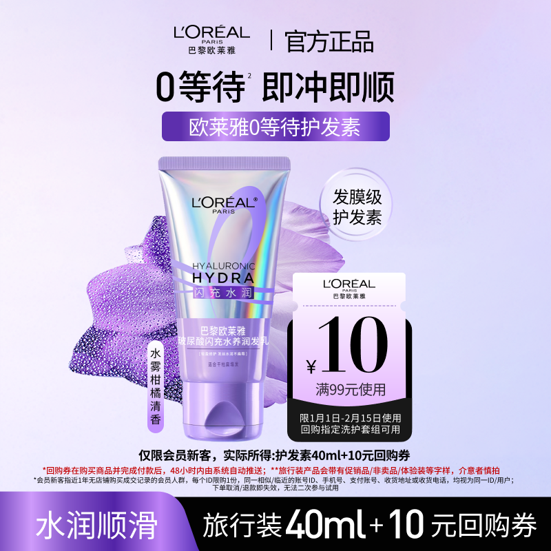 欧莱雅0等待护发素发膜级润发乳即冲即顺水润柔顺改善干枯毛躁发