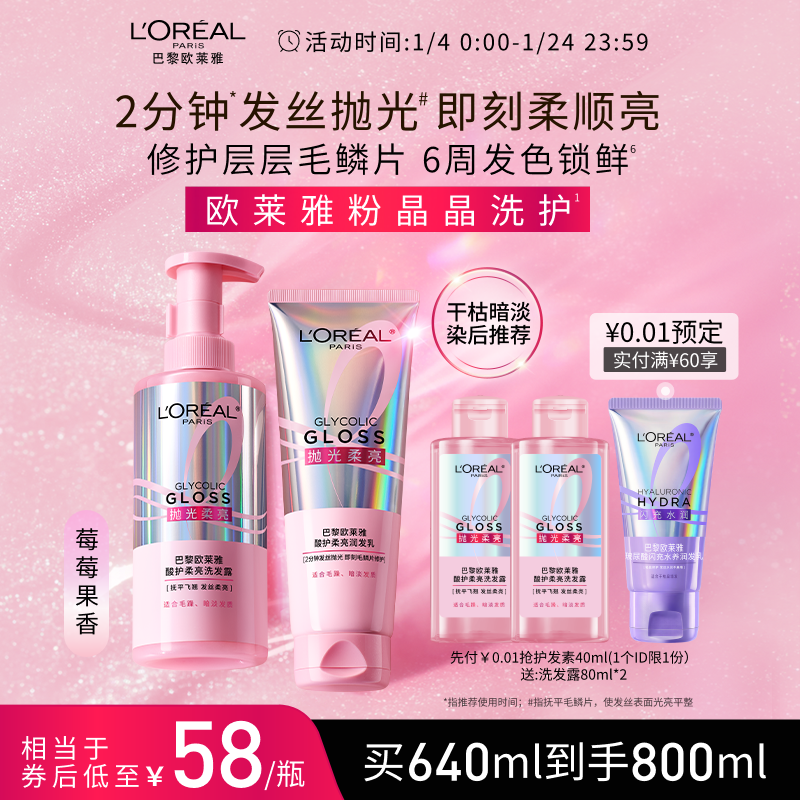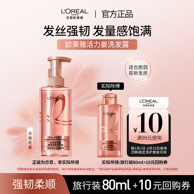 【李佳琦直播间彩妆场】 欧莱雅粉晶晶洗发水洗护柔顺改善干枯*