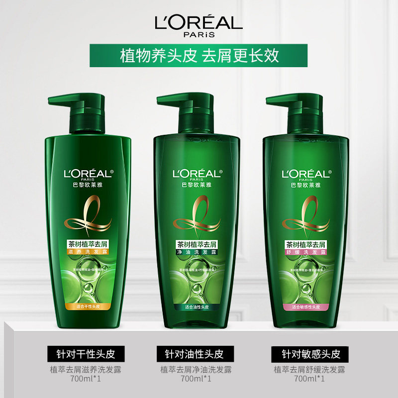【百亿补贴】欧莱雅精油润养茶树植萃透明质酸洗发水柔顺去屑清爽