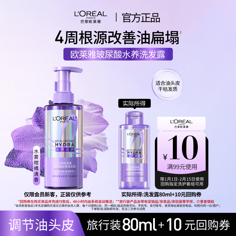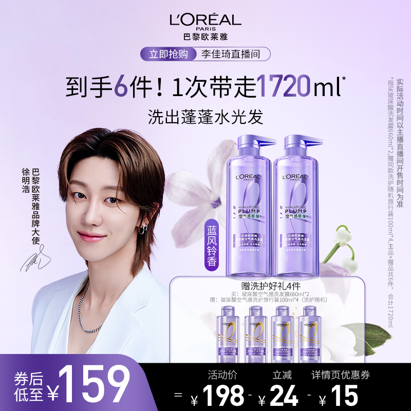 【李佳琦直播间彩妆场】欧莱雅玻尿酸洗发水护发素洗护控油蓬松*
