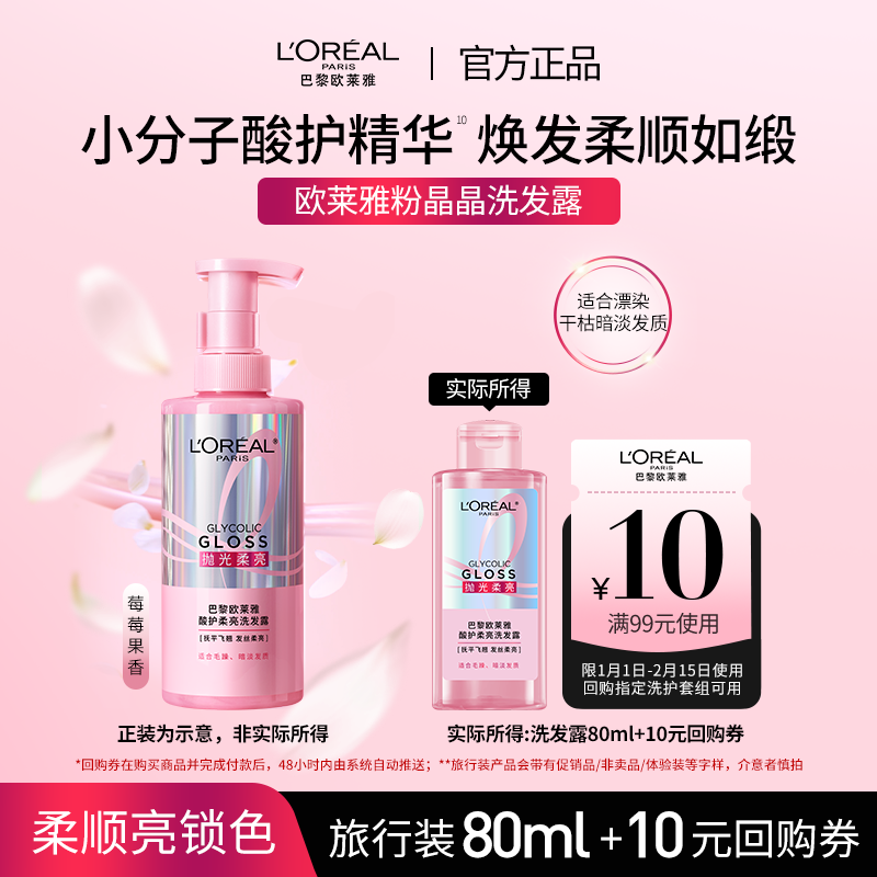 【新品u先派样】欧莱雅粉晶晶洗发水闪耀柔顺改善干枯毛躁80ml